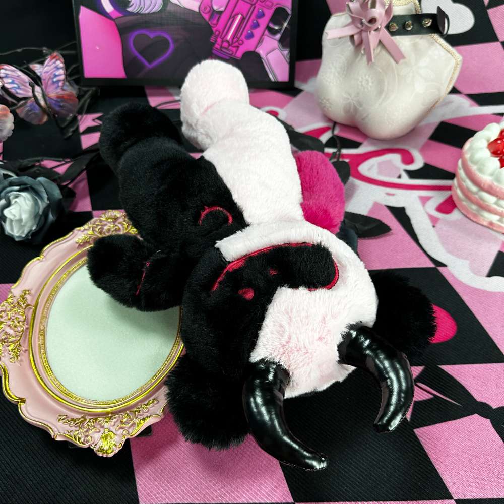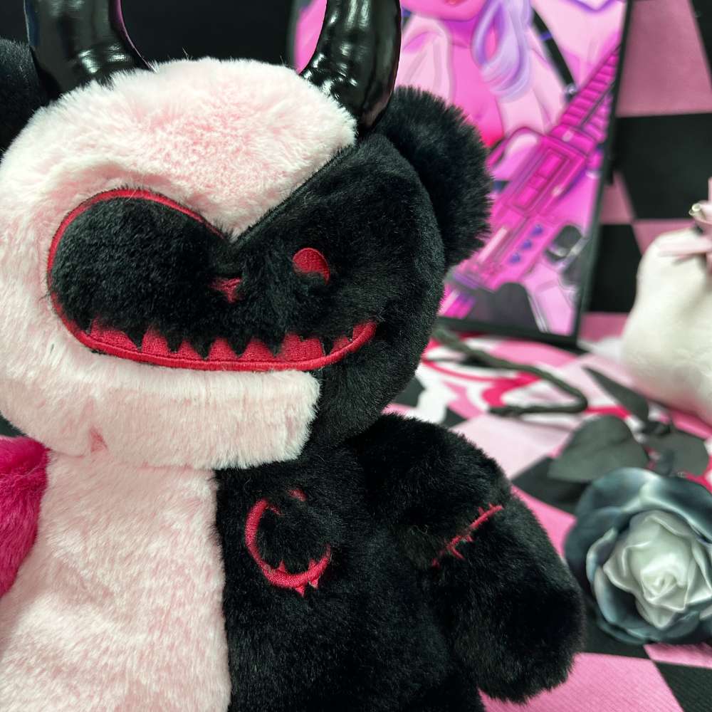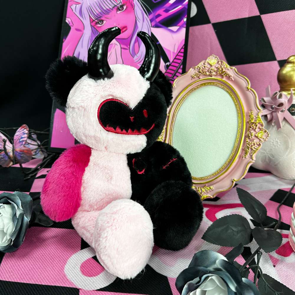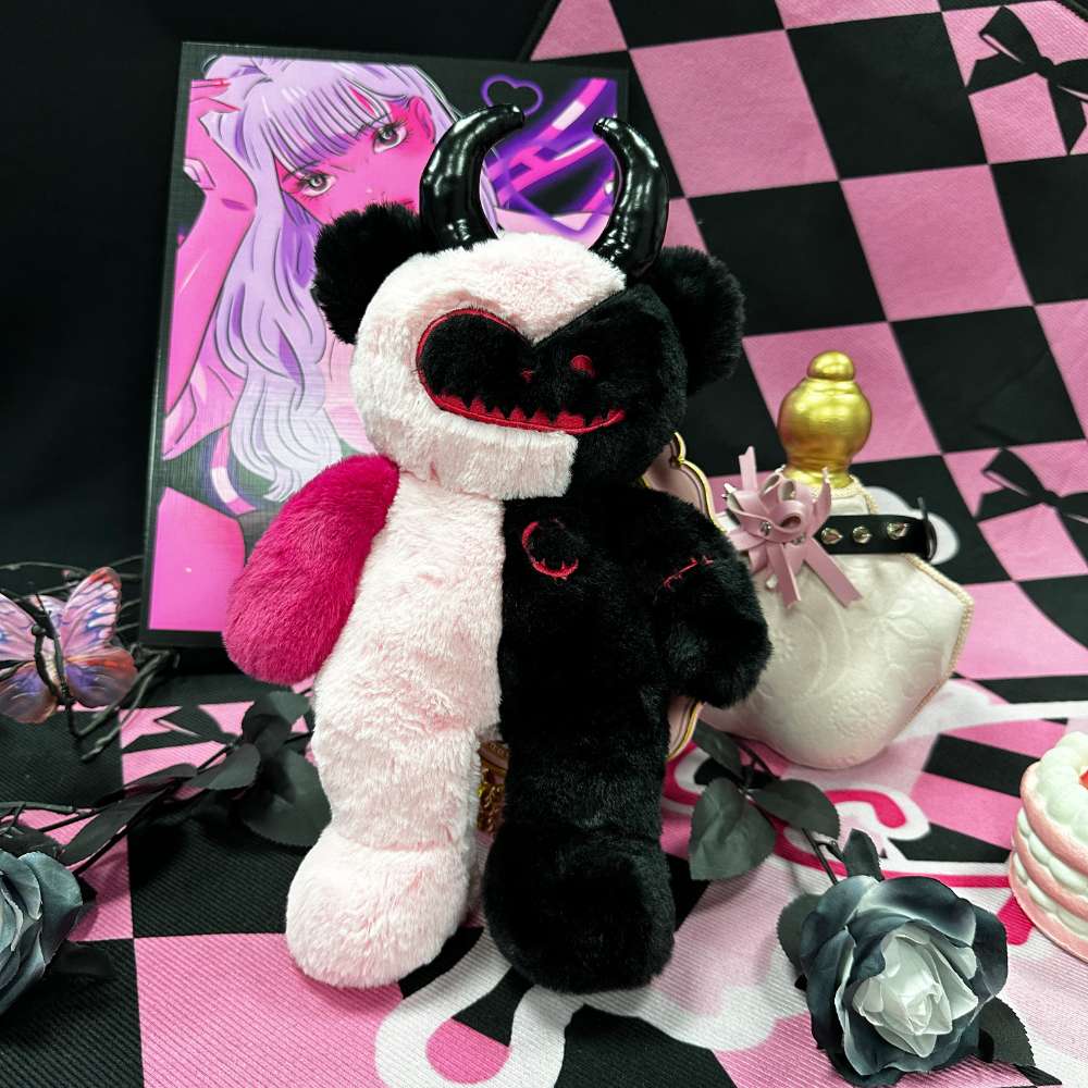 This ain't your average teddy bear! With its black-and-pink split body, 🖤💗 stitched grin, and devil horns, this Emo Chaos Bear looks like it just walked out of a punk show. Soft to hug but full of attitude, it’s the perfect plushie for those who love emo, goth, or visual kei vibes. Whether on your desk or your backpack, it’s always making a bold statement!✨
