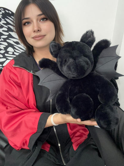 Hey there! Picture this: you’re holding a wickedly cool black plush dragon buddy! Crafted with faux rabbit fur, it’s so smooth and soft, it feels like you’re petting a fluffy cloud. Its chubby little hands and feet are round and squishy—grabbing them gives you that oh-so-satisfying meaty vibe. This dragon is your ultimate sidekick to kick boring days to the curb! Rocking a gothic vibe, it’s got that handsome, edgy charm—perfect for when you’re strutting a dark, moody outfit. Pair it with your black-on-black look today, and boom, your style game just leveled up with some serious flair! Oh, and check this—it’s got a pair of badass wings that scream “one-of-a-kind.” If you’re into niche, standout vibes, this dragon’s calling your name. Snag this gothic stunner and let it roll with you in style—it’s ready to slay the day!