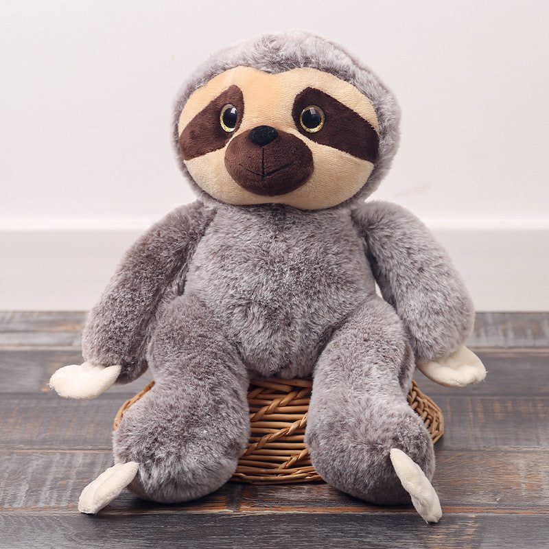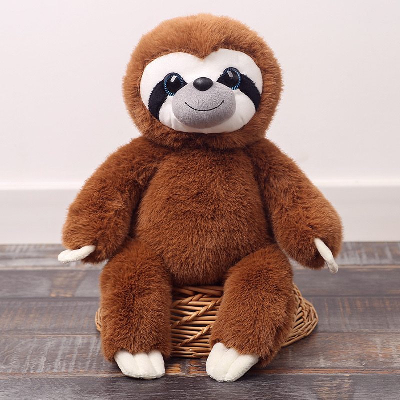 Introducing our adorable sloth stuffed animal, the perfect companion for cuddles and playtime! Choose from charming grey or warm brown to find your perfect match. This lovable creature features a clean white face, accentuating its cuteness. With a big black nose and a cheerful smile, it radiates warmth and joy. The mask-like eyes surrounding its face add a touch of charm. Its hairy and fluffy body not only enhances its cuteness but also provides a soft and comforting touch. Bring home this delightful sloth stuffed animal toy today and experience the joy of snuggling with your very own sloth companion. Perfect for sloth enthusiasts and anyone in need of a cuddly friend!