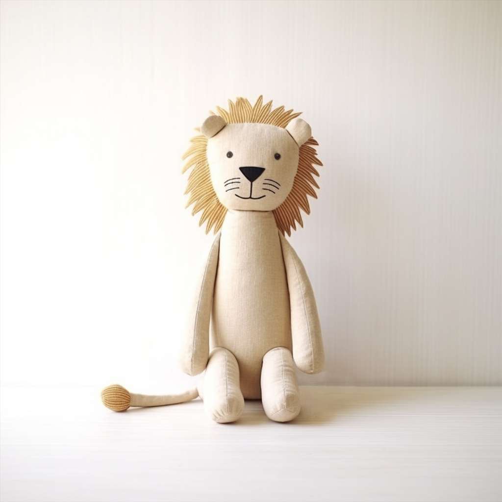 Meet the Cute Gold Cartoon Lion Stuffed Animal, a delightful plush toy that perfectly captures the majestic charm of a lion in an adorable and friendly design. This charming lion boasts a soft, golden-yellow body made from high-quality, short plush fabric, providing a smooth and cuddly texture. The lion's mane is crafted from slightly longer, darker plush, adding a realistic and fluffy touch. The plush toy features a round, brown nose and large, expressive black eyes that enhance its endearing look.